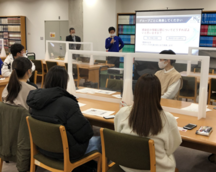 学生の考える力を鍛える「北日本新聞連携講座」が富山国際大学東黒牧キャンパスで12月21日開かれ、1年生約20名が参加しました。