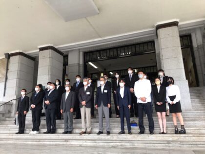そのあと県庁の正面玄関大階段に場所を移し、記念写真を取りました。