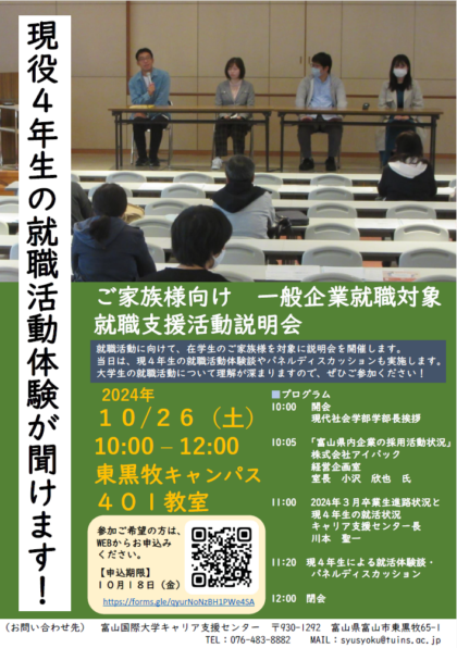 就職活動に向けて、在学生のご家族様を対象に説明会を開催します。