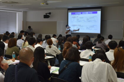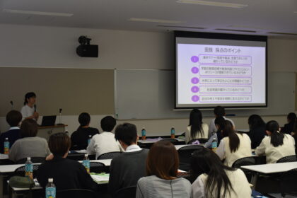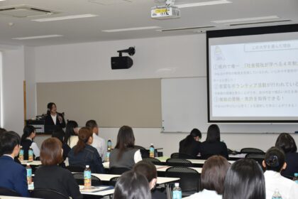 13:30~16:00までの2時間半にわたり、両学部の全体説明を行った後、学部ごとに分かれ、「学部説明」「小論文・面接対策」「在学生による受験体験談等」「進学相談」を行いました。