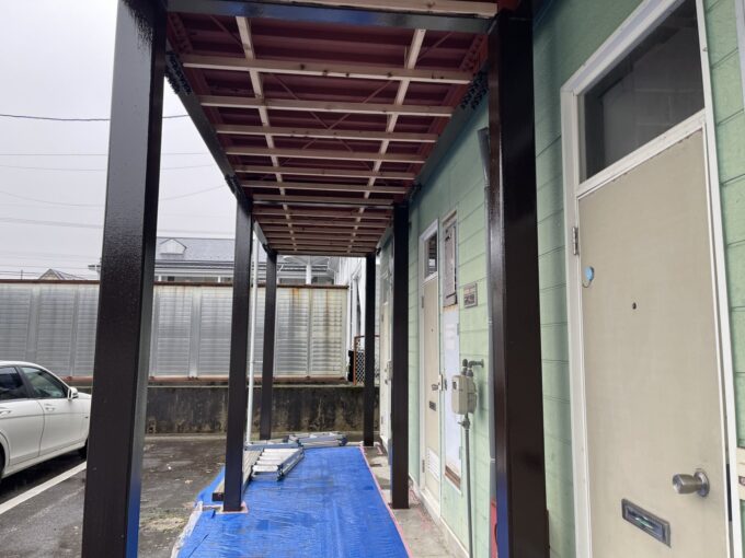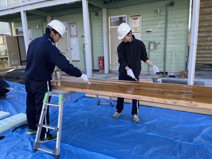 現代社会学部 川本研究室では、空き家を有効利用して、地域の活性化を目指している地域の人々と協働で「建設プロジェクト」を実施しています。これは、住環境デザイン分野における実践教育プログラムです。黒部市で行っている空き家アパートリノベーションプロジェクトでは、研究室の4年生(木村颯太郎さん、前田泰幸さん、屋敷萌々香さん)が中心となり進めてきました。2024年度から計画を進め、やっと計画の方向性が決定しました。シニア世代も子供たちも集まる多世代交流の場として「家庭科教室」を提案し、事業主の承認を得て、計画案が完成しました。2025年度は、対象となる空き家アパートを人が集まれる場として、学生が提案した外回りの計画から工事がスタートしました。外部階段部分の工事は年内完工予定です。