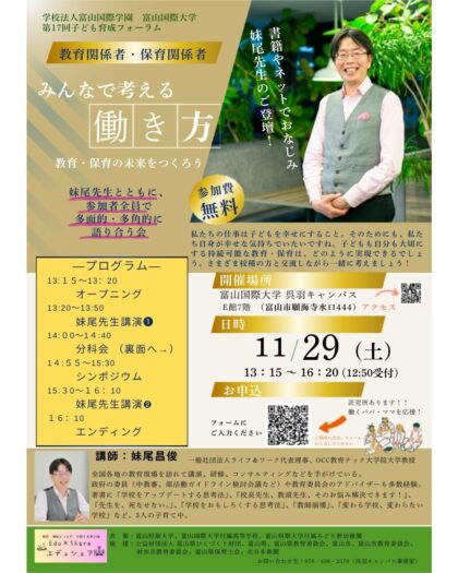 2025年11月29日(土)13時15分より富山国際大学子ども育成学部「第17回子ども育成フォーラム」を開催いたします。