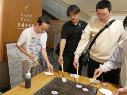 「富山県立立山博物館」「大岩山日石寺」などの施設見学や、せんべいの手焼き体験をしました。